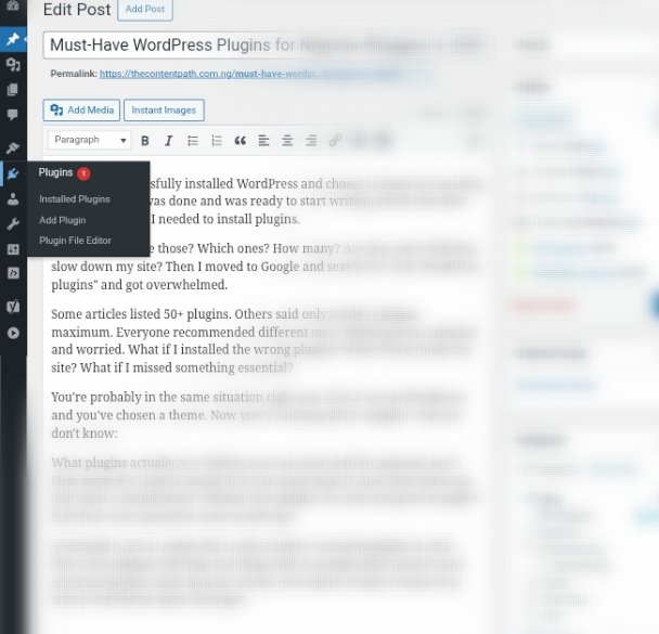 After have successfully installed WordPress and chosen a theme for my blog post, I thought I was done and was ready to start writing articles but then someone told me I needed to install plugins.