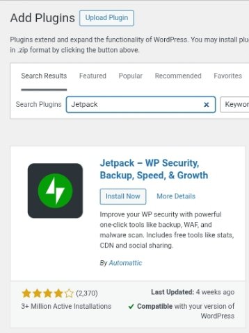 Allows for Social sharing buttons and related posts feature. How to install; Search “Jetpack” in Plugins and click on Add New. After installing, connect to WordPress.com (free account). Choose which features to activate. I recommend: Stats, Security, and Image CDN.