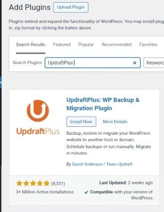 If you want to install it, go to WordPress dashboard and navigate through the plugin icon, click on it and search for “UPDRAFTPLUS”, then click on add new.